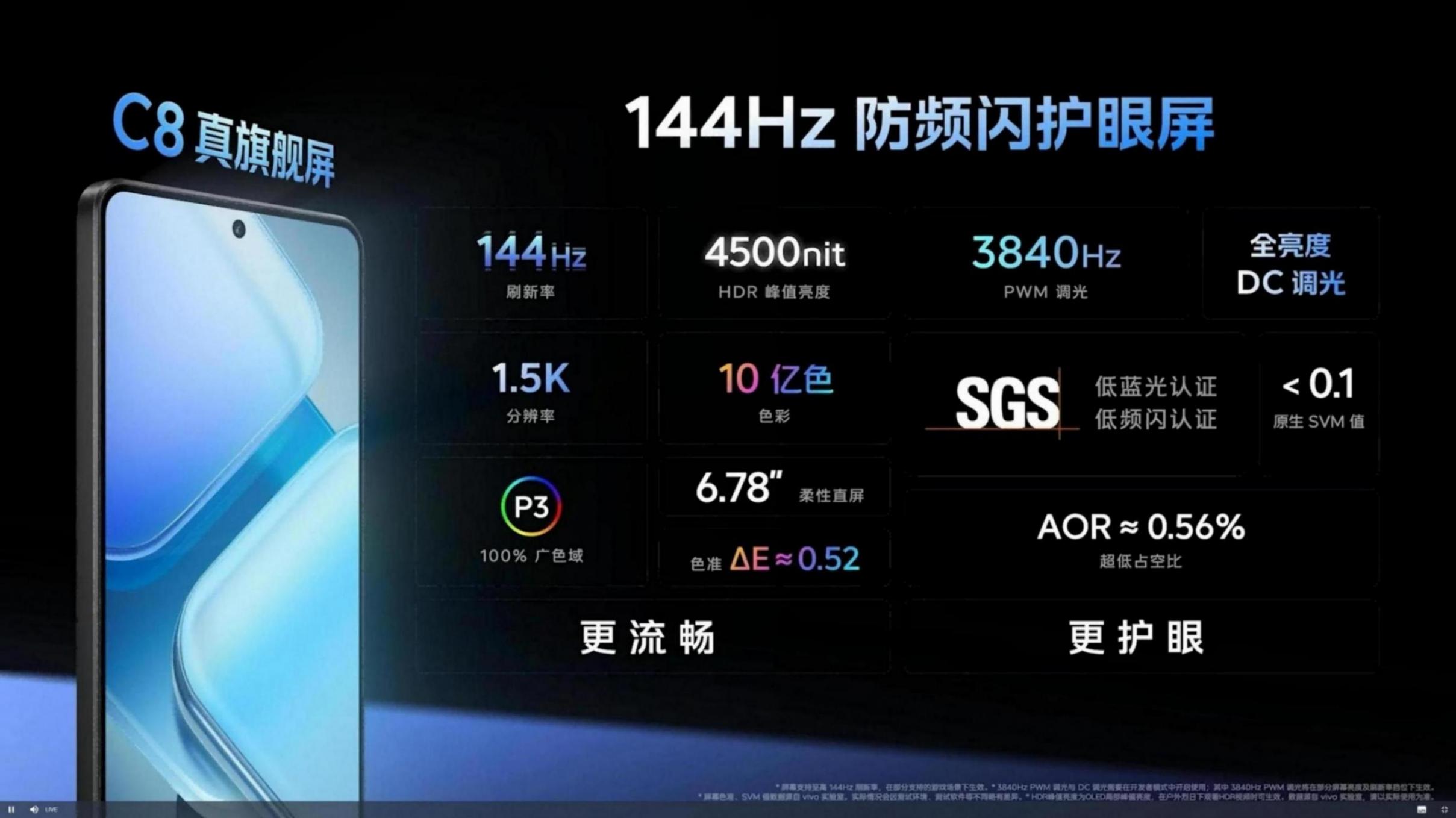 既然都是华星光电的屏幕,那就比较好办了,iqoo z9 turbo的c8比c7当然要好些,可以带来更高的局部峰值亮度等表现,能效表现也会好些,当然实际体验感知差异并不大,但在护眼上面,iqoo z9 turbo这次玩得挺花,除了高频pwn调光,还支持全局类dc调光。