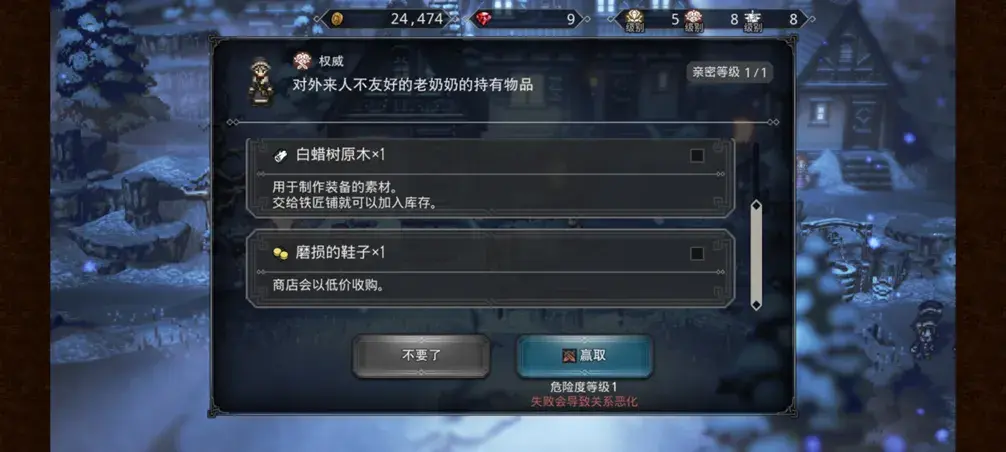 比如下面这个老奶奶属于权威阵营,我们就可以用武力把老奶奶身上的破鞋子抢走;如果npc贪财,那么这时就可以利用财力直接「收买」对方,用于战斗支援。或者遇到某位崇尚名望的npc,如果玩家看中了他们身上的哪个道具,则可以直接进行请求。