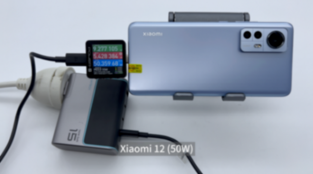 为小米12充电,使用 power-z km003c 测试仪读取到的功率为9.28v 5.43a 50.36w。
