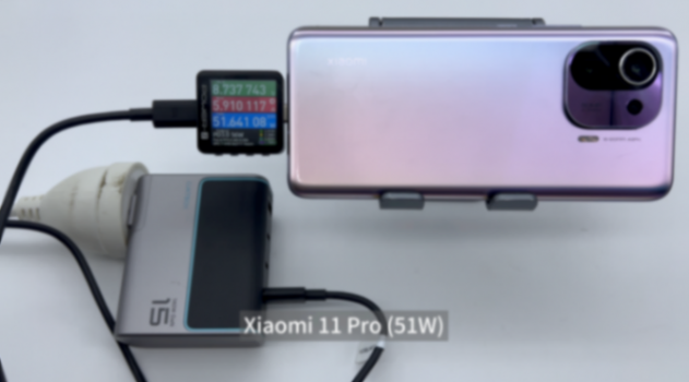 为小米11 pro 充电,使用 power-z km003c 测试仪读取到的功率为8.74v 5.91a 51.64w。