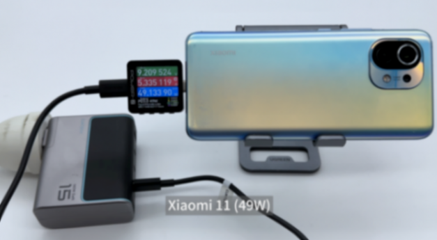 为小米11充电,使用 power-z km003c 测试仪读取到的功率为9.21v 5.34a 49.13w。