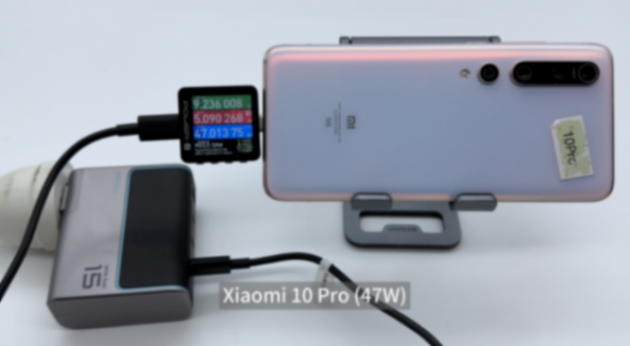 为小米10 pro 充电,使用 power-z km003c 测试仪读取到的功率为9.23v 5.09a 47.01w。