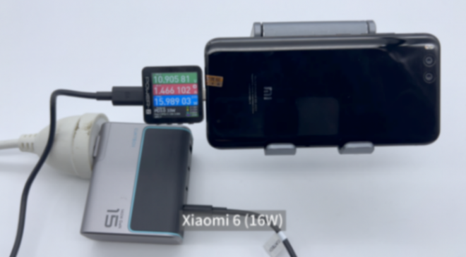 为小米6充电,使用 power-z km003c 测试仪读取到的功率为10.91v 1.47a 15.99w。