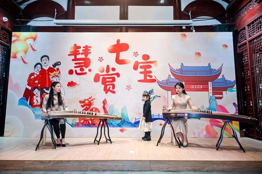 武术、古筝、朗诵、合唱……当天,形式多样的节目在现场轮番上演。嘉年华集市活动上,不仅邀请到书法名家到现场书写、赠送春联,还设了获奖作品展和古镇“七香雅集”展,并以“打卡”形式吸引市民参与互动。