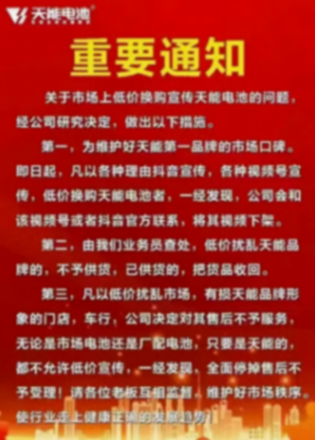 按理说,低价换购电池的活动,能够增加电动车电池的销量,这对电池厂家来说是一个利好,但是就在昨天(4月28日),超威、天能相继发布了通告,明确打击低价换购扰乱市场行为,为什么电子厂家却反对低价换购呢?行内人说出3个原因。