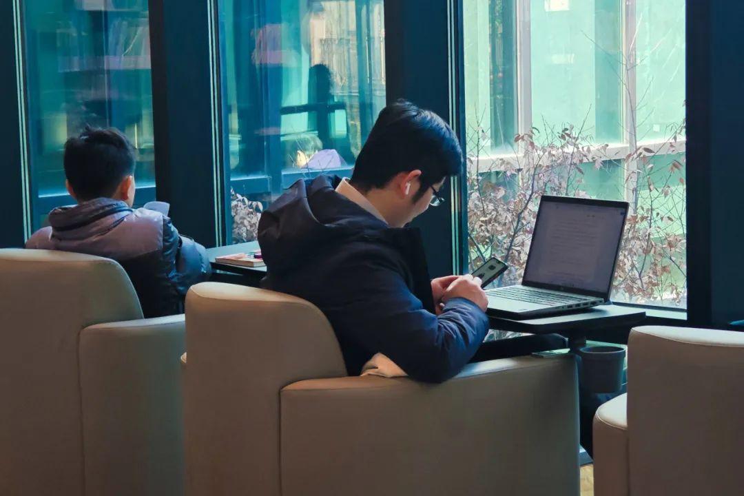 休闲办公区能容纳20多人,配备办公桌椅、阅读桌椅,并提供充电装置,为读者、上班族等提供安静便利的阅读、办公环境。