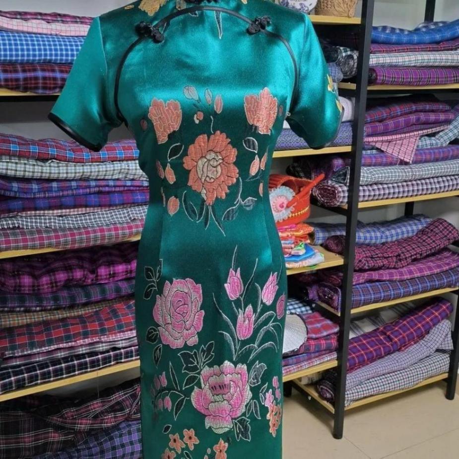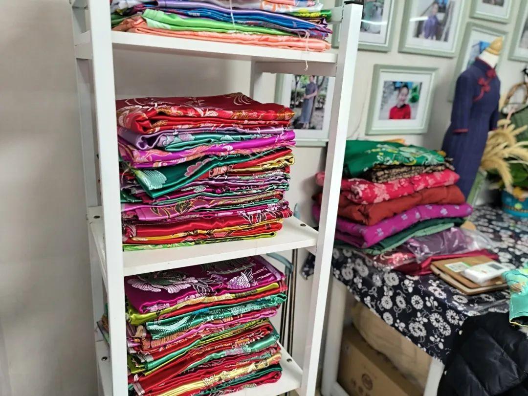 走进马英英的工作室,这里展示着香云纱、锦缎、刺绣、真丝等等各种各样材质的绸缎,除此之外还有各种做工精良、曲线优美的旗袍,进进出出的客人络绎不绝。