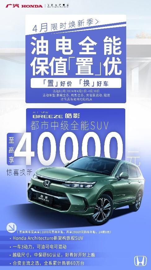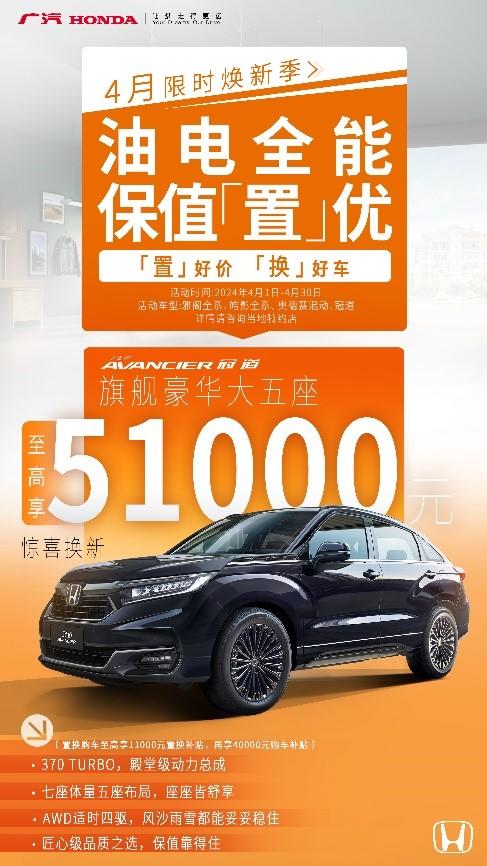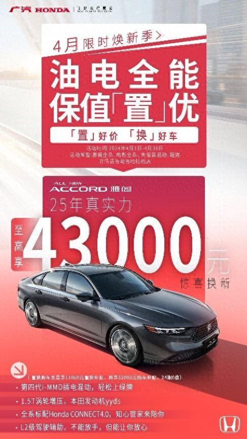 “置”好价,“换”好车,广汽本田置换购车钜惠政策来了!4月限时焕新季火热开启,截至2024年4月30日,置换购买“雅阁、皓影、奥德赛混动、冠道”四大明星车型的用户,可享限时补贴高达5.1万元的惊喜换新政策,直接助您轻松升级座驾,更有至高24期0息的超值金融政策,让您0压力购车。油电全能,保值“置”优,广汽本田坚持高品质造车,旗下款款皆好车,为用户带来长期安心用车价值。广汽本田此次的限时补贴政策,绝对是您置换购车的绝佳时机,详情可咨询广汽本田当地特约店。