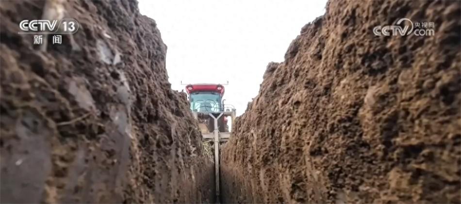 总台央视记者刘成:这就是新挖好的安装喷灌的管沟,它的深度是1.3米左右,宽度只有15厘米左右,这样的宽深度,一方面是为了保证安装的喷灌稳固度,而另一方面也是为了保证安装好之后,不影响正常的机械化作业。