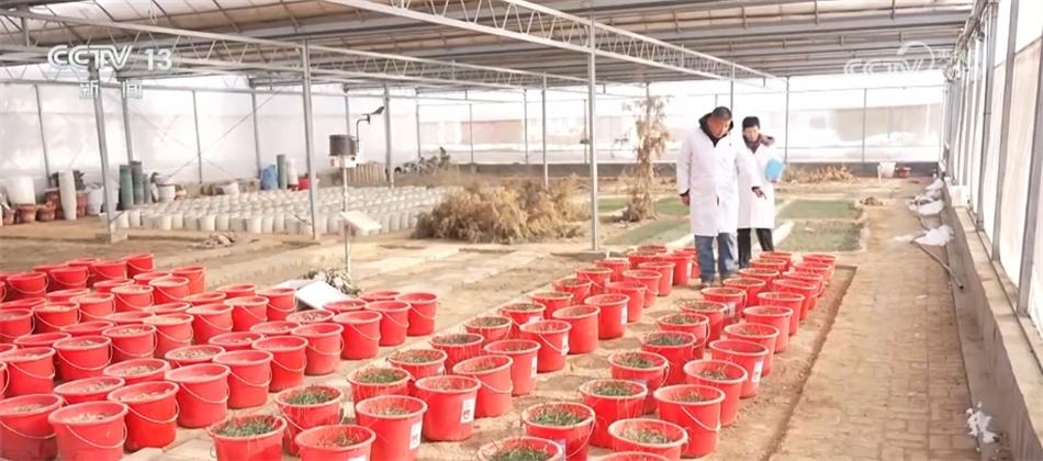 在位于河北省南皮县的中国科学院南皮生态农业试验站,不同的旱碱麦品种被分类种在不同的试验盆中,科研人员根据不同地区的盐碱地土壤、盐分、水分进行划分,运用不同的肥料进行种植管理,以此来收集不同条件下影响旱碱麦生长的数据。