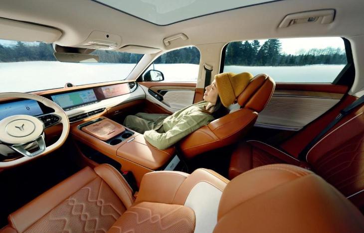 该车车内座椅由皮质 翻毛皮材质混搭包裹,前后排座椅的质感相同,表面皮质相当柔软,内部填充物厚实,乘坐时有着明显的陷入感。与此同时,前排用户还能体验到座椅电动调节,座椅加热/通风/按摩等一系列功能。