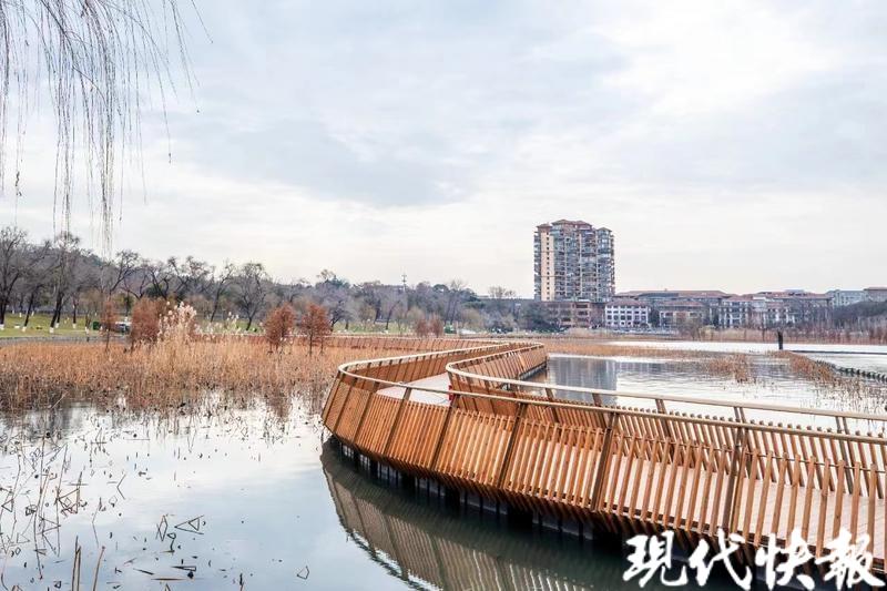 现代快报记者注意到,栈道西侧入口是一座颇有中式古韵的风雨连廊。宗思静介绍:“这座风雨连廊所在的位置,正是明代黄册库旧址——检阅堂,也是当时乘船进湖的渡口码头和唯一入口。”