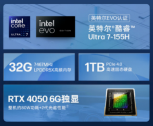 ultra 7 155h / rtx 4050 / 32gb 版本 8999 元