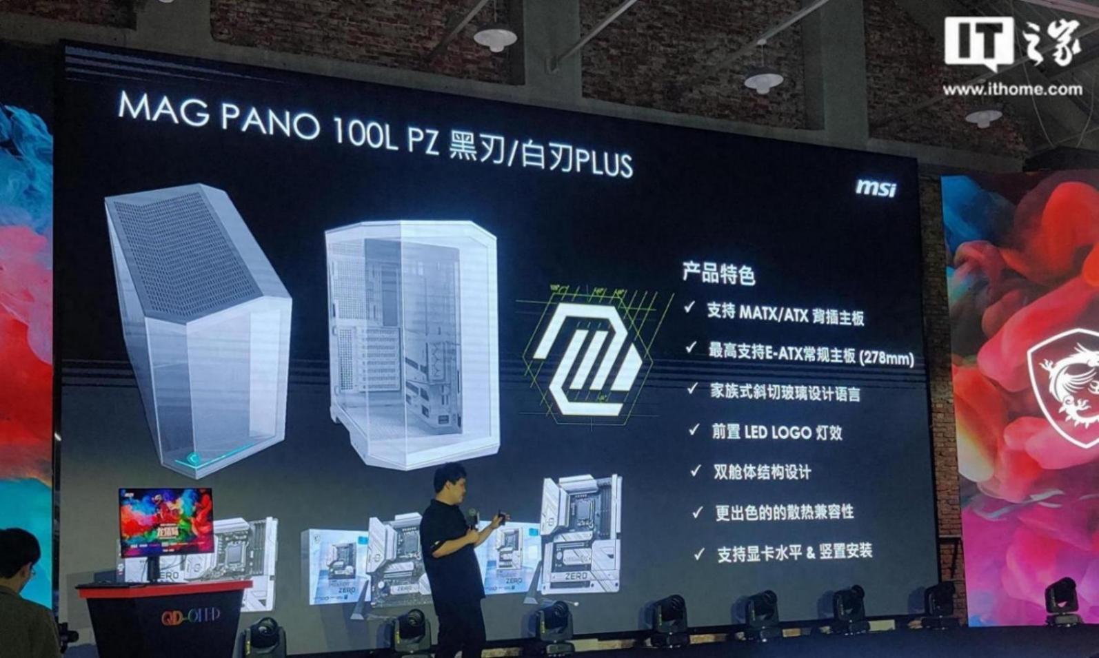 4 月 30 日消息,微星官方在上周六举办的 2024 微星武汉站龙盾局技术沙龙暨新品分享会上表示,将于五月推出 mag pano 100l pz 黑刃 / 白刃 plus 机箱,支持背插 atx 主板。