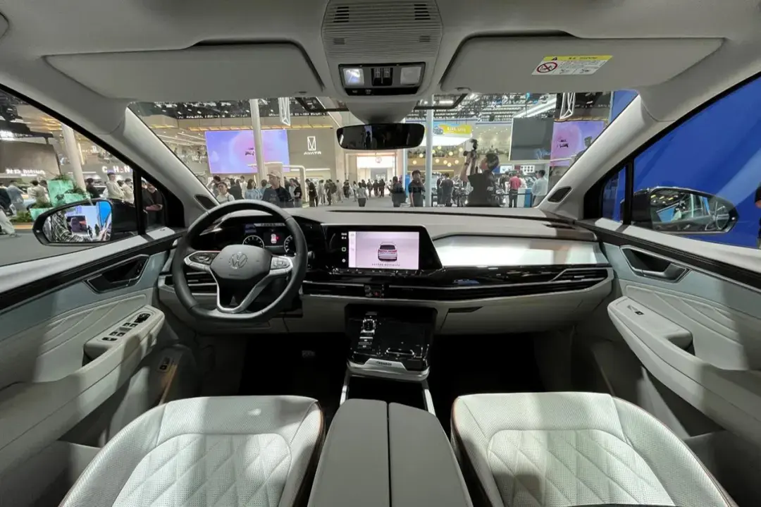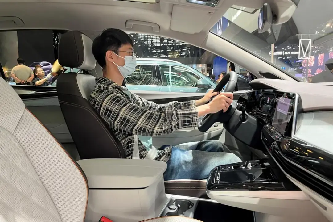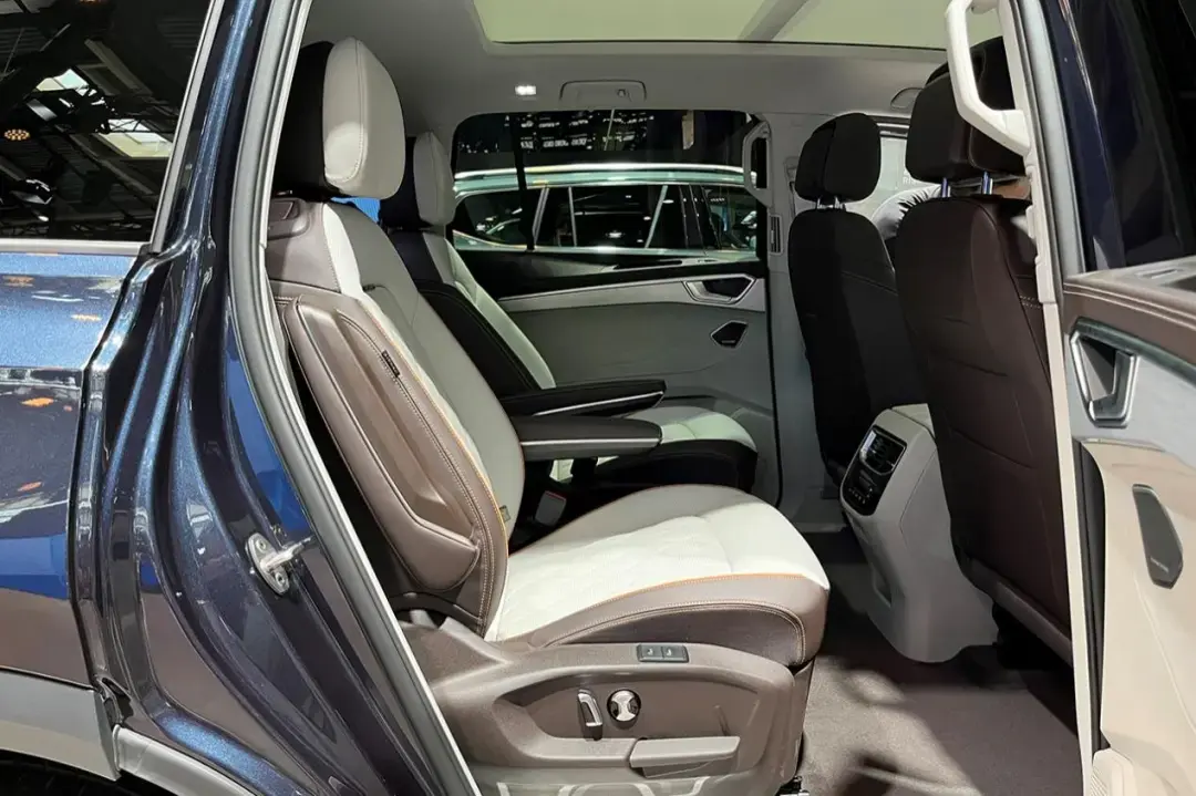 看到外部尺寸大家其实就已经开始想象揽境的内部空间了,但其实它空间会比我们想象的更好,因为揽境诞生于mqb平台,采用了更适合家用的横置布局,动力单元侵占的空间更少,留给乘坐的空间更大。在座椅布局方面,揽境提供6座和7座两种选择,这次在展台上我们实拍的6座版本。