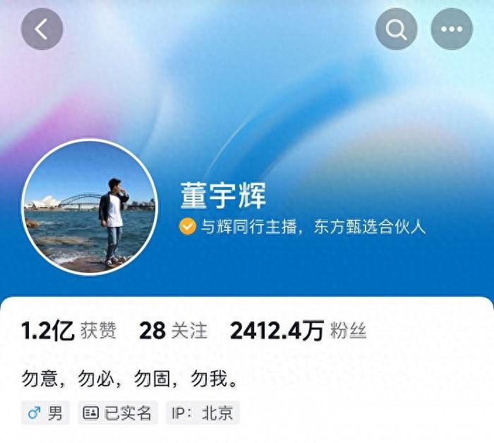 1月20日,董宇辉抖音账号认证资料显示,董宇辉账号认证已变更为“与辉同行主播、东方甄选合伙人”。据了解,东方甄选旗下主播董宇辉的抖音新账号“与辉同行”于1月9日首播,俞敏洪现身直播间透露称,目前“与辉同行”团队成员已有接近70人。
