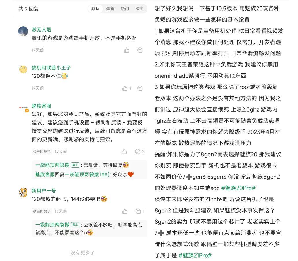 按照酷安网友们的反馈,时至今日,魅族21系列在《英雄联盟手游》120hz模式依然稳不住,很多热门手游的厂商也没有对这款产品做适配,空有一身硬件性能却发挥不出来。