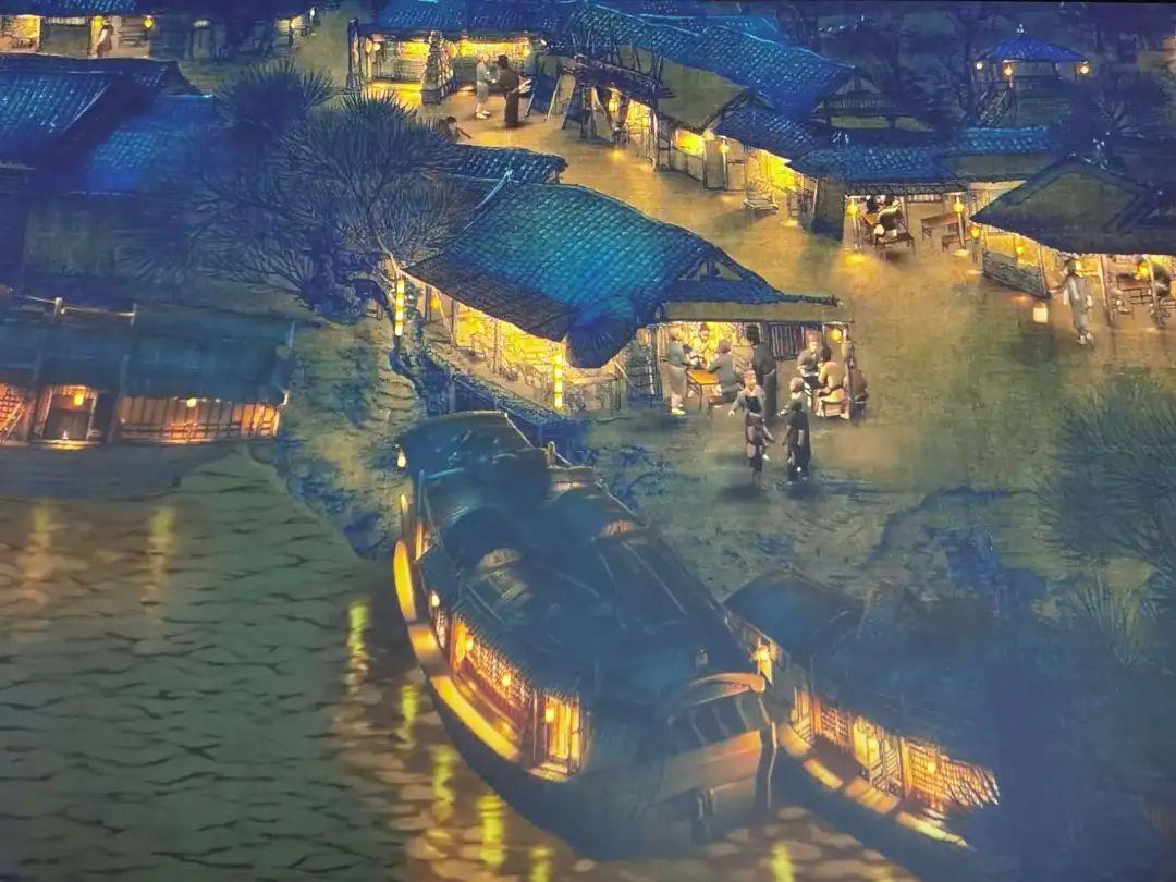 北宋汴京的郊外春景、卞河场景、城内街市,统统连缀成了一幅恢弘的长卷。画卷里共有1068个人物,生动地展现了北宋京城开封的繁华景象。画卷中牛、马、驴、骡共73匹,飞禽鸟兽动态呈现,通过日夜交替的景象,时空界限瞬间被打破,让人仿佛回到了千年前。每个人物都有特有的故事线,通过无数细节的描绘,展示了画卷里的人间烟火,将宋朝的历史活灵活现地展现在市民面前,让人欣赏到了它的美感和历史底蕴。