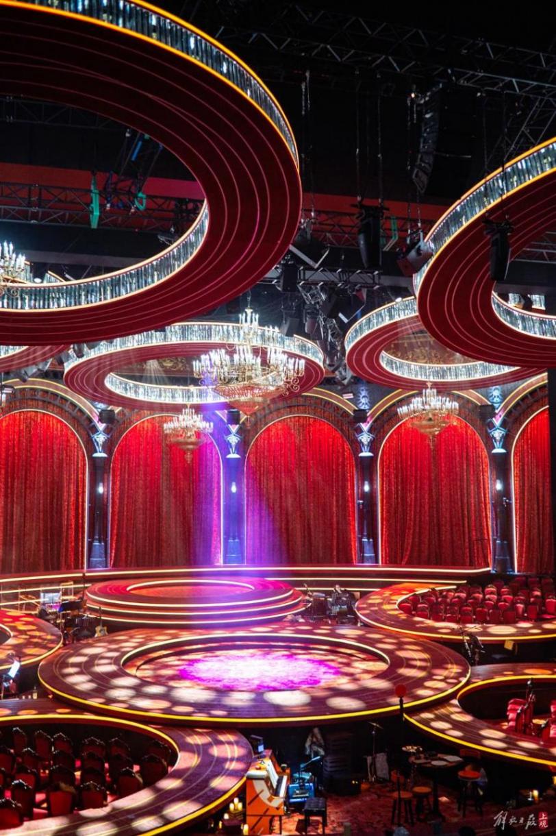 该作的舞台设计特别邀请知名韩国舞美艺术家吴弼操刀。以红色为主基调,6个巨型圆圈组成的星环舞台中设有大量的沉浸式观演座位,12吨重的圆形装饰、1吨重的水晶吊灯为舞台带来“硬碰硬”的视觉震撼。近600个灯光cue点、65个悬挂音响点、10套timax声音跟踪系统,为剧院量身定制,为观众的沉浸式体验保驾护航。