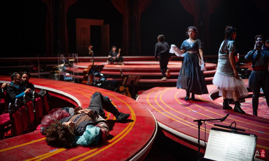 《大彗星》涉及的舞台机关众多,因为沉浸式舞台的缘故,演员的走位也十分复杂,同时关联到与灯光的配合,排练因此变得漫长,需要一点点细细打磨。