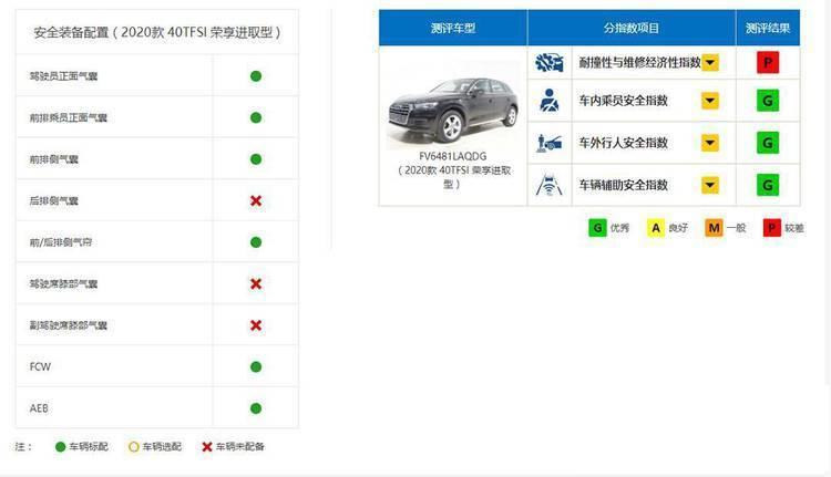 q5l在中保研防撞测试中却因为耐撞性与维修经济性指数为p(poor差)没能拿到全g成绩,防撞性不佳且维修贵,车内也配了6个安全气囊,仅支持isofix接口。