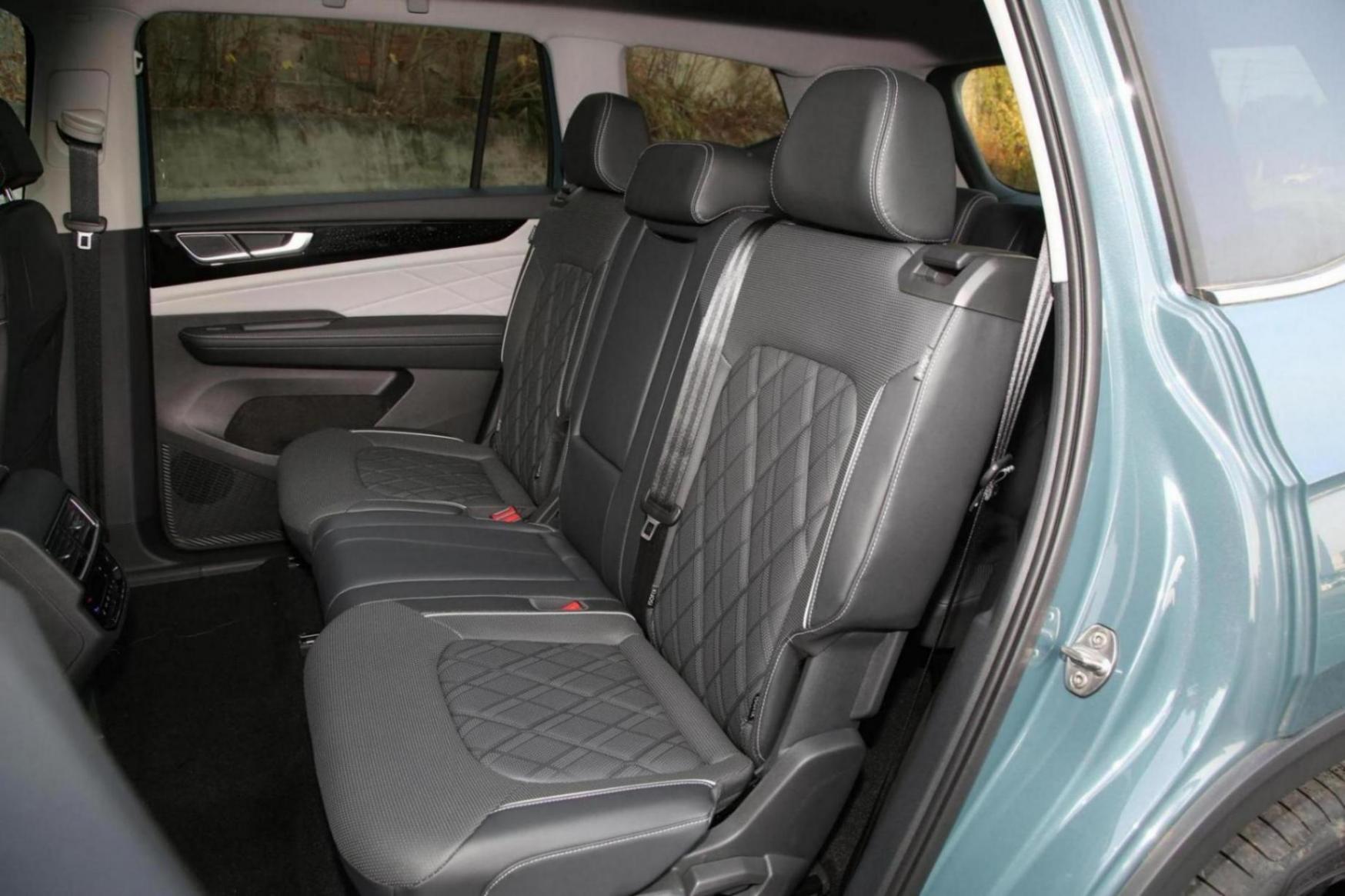 尺寸方面,新车的长宽高分别为5052/1989/1773mm,轴距达到了2980mm,这样的尺寸参数也让大众途昂在同级车型中具有不错的尺寸优势。然而,2980mm的轴距也保证了车内拥有宽敞的乘坐空间,第二排地板中间的凸起并不十分明显,第二排的乘坐舒适性不错。第三排座椅的乘坐空间相比很多车型来说相当不错,且大众途昂的第二排座椅左右均可向前翻倒,也方便了第三排乘客上下车。