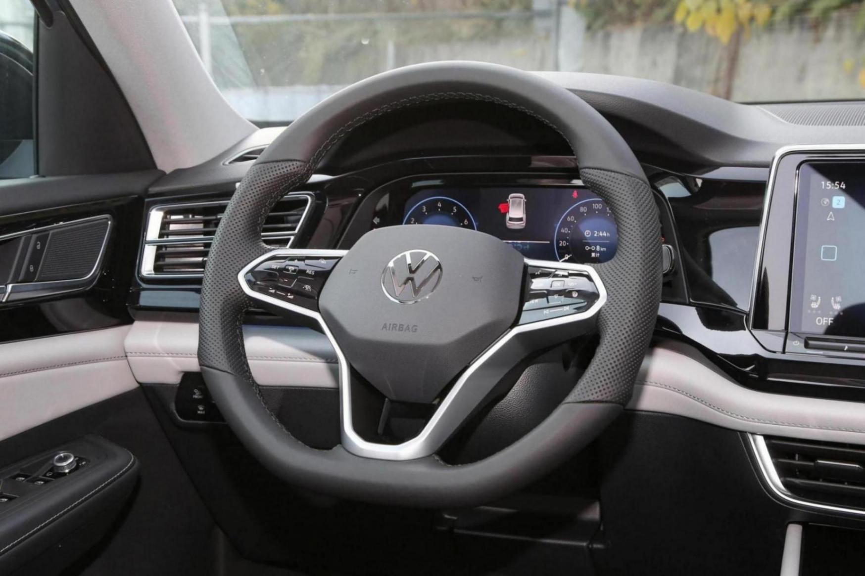 内饰方面,可以看出整个车内采用了大众家族最新的设计理念,例如,悬浮式中控屏、科技且前卫的拨片式数字化换挡机构以及全新触控式的空调按键等细节。而大面积黑色钢琴烤漆 银色镀铬饰条让人眼前一亮甚是惊艳。三辐式多功能方向盘,相比于大众的传统方向盘,改款方向盘尺寸较大,握感出众、细腻,两边触摸式的按键也具有相当的科技感。