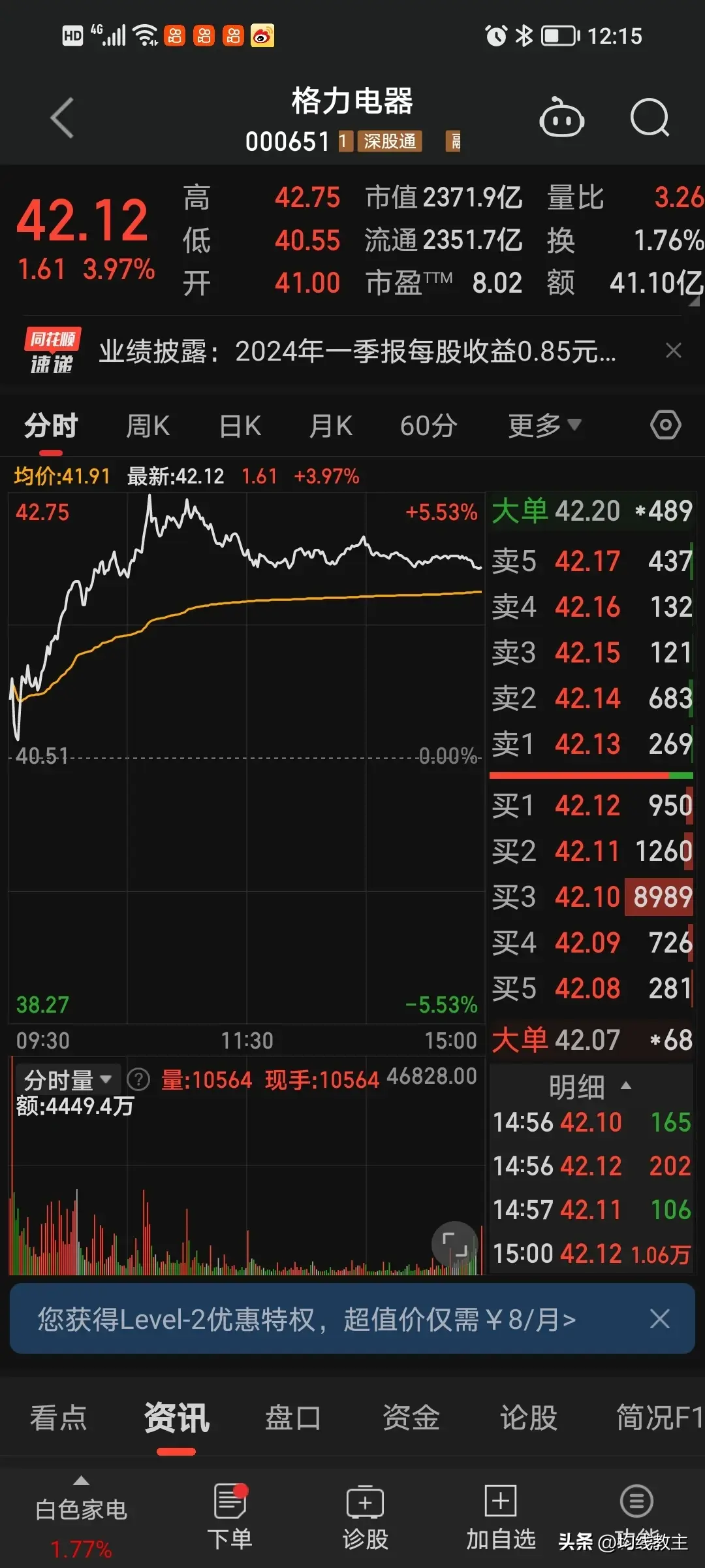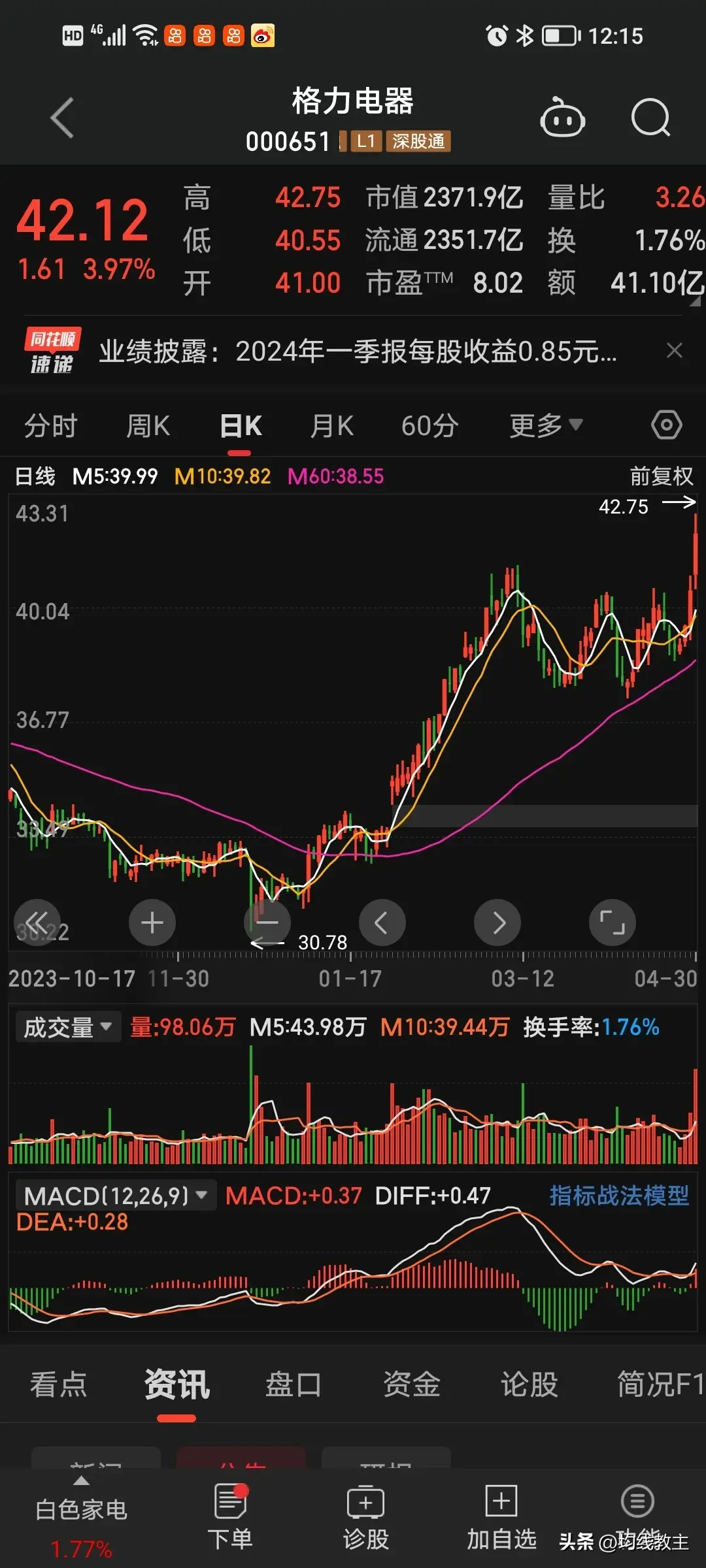 格力电器用大涨了差不多四个点,而且还创出了阶段新高,真的是太优秀了。