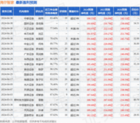 最新盈利预测明细如下: