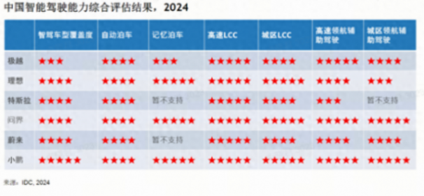 有意思的是,车展前夕,国际数据公司(idc)也专门发布了一份《智能驾驶能力评估,2024》研究,通过实车测试,对各大车企的智能驾驶体验效果进行了一次综合评估。