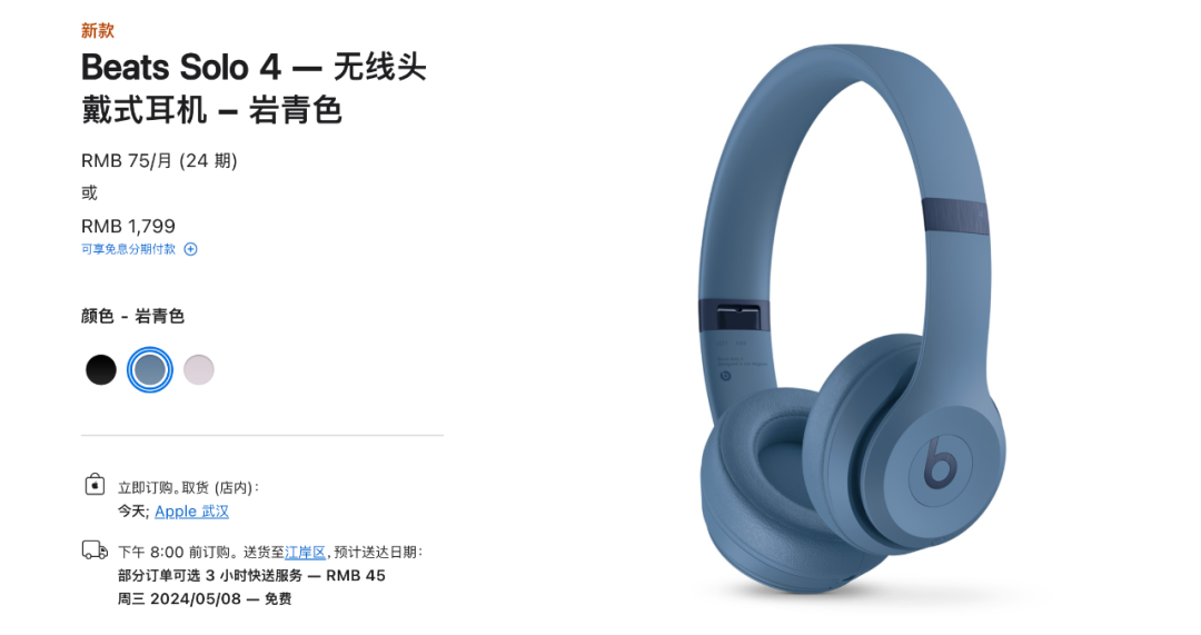 beats solo 4 运动头戴耳机,售价 1799 元人民币。