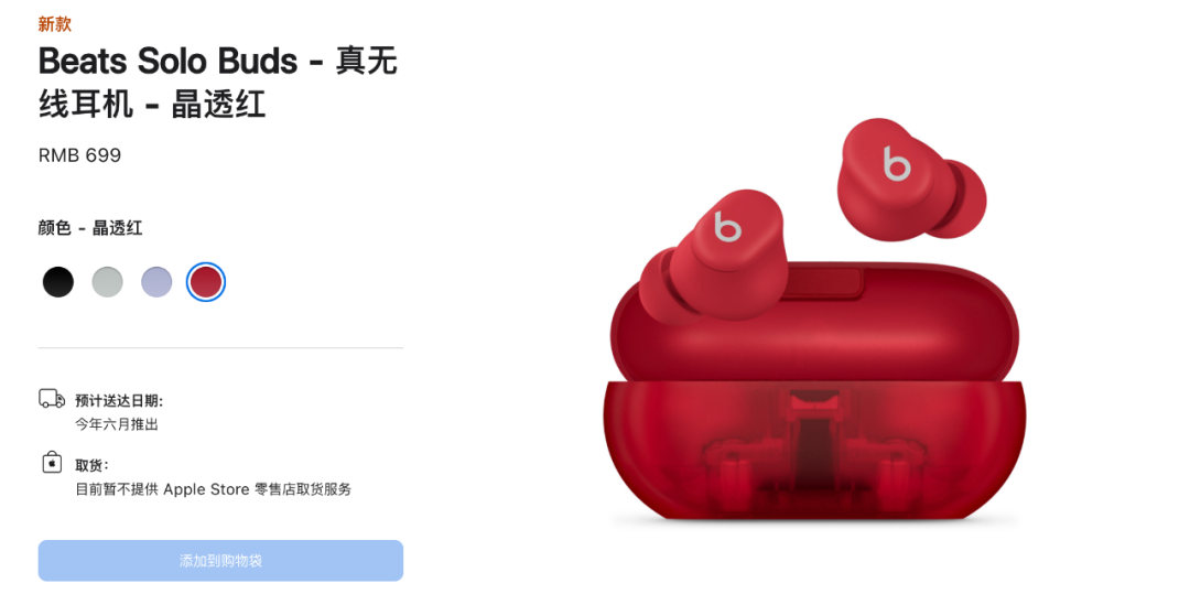 然后是 beats solo buds 真无线耳机,售价 699 元。