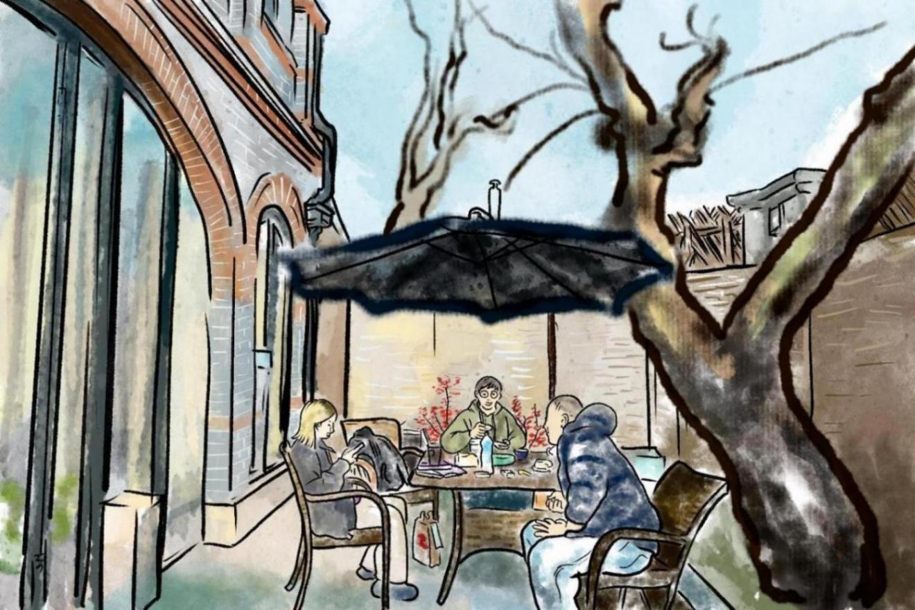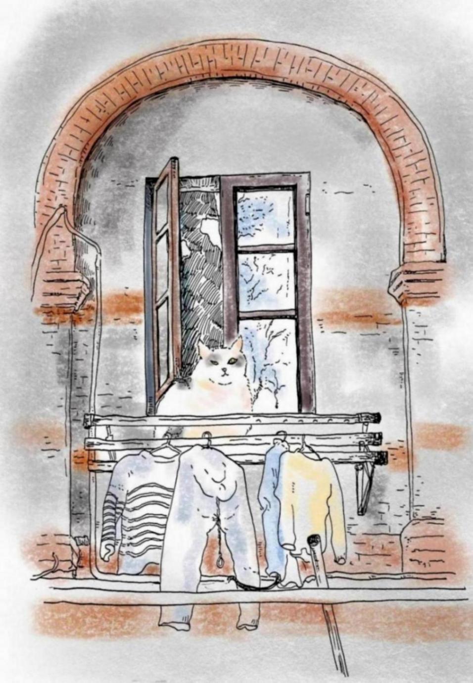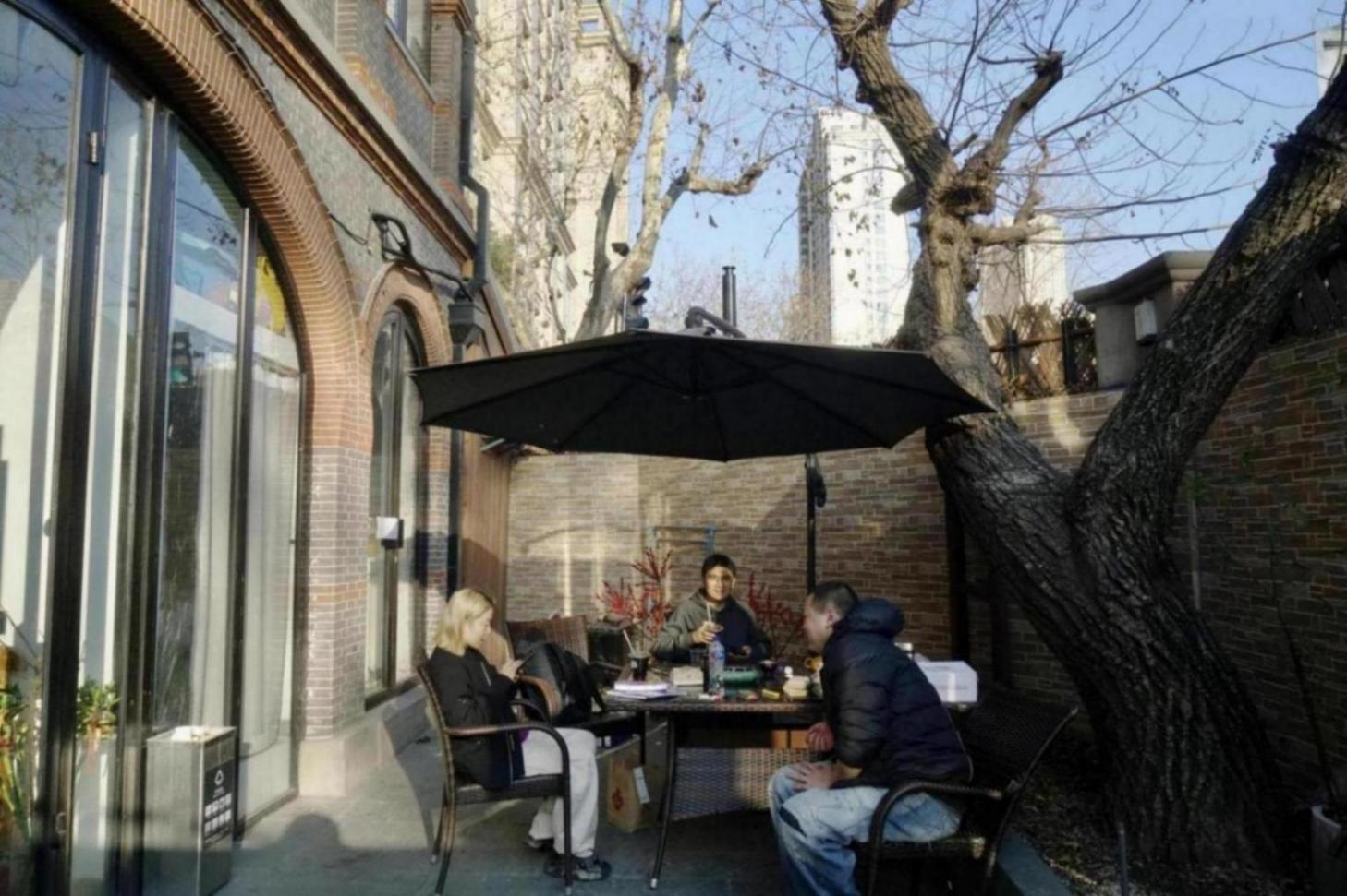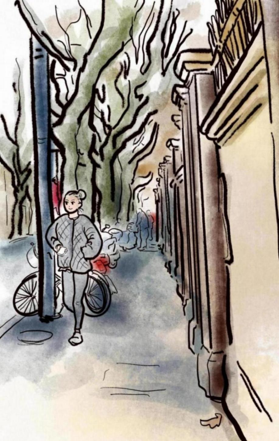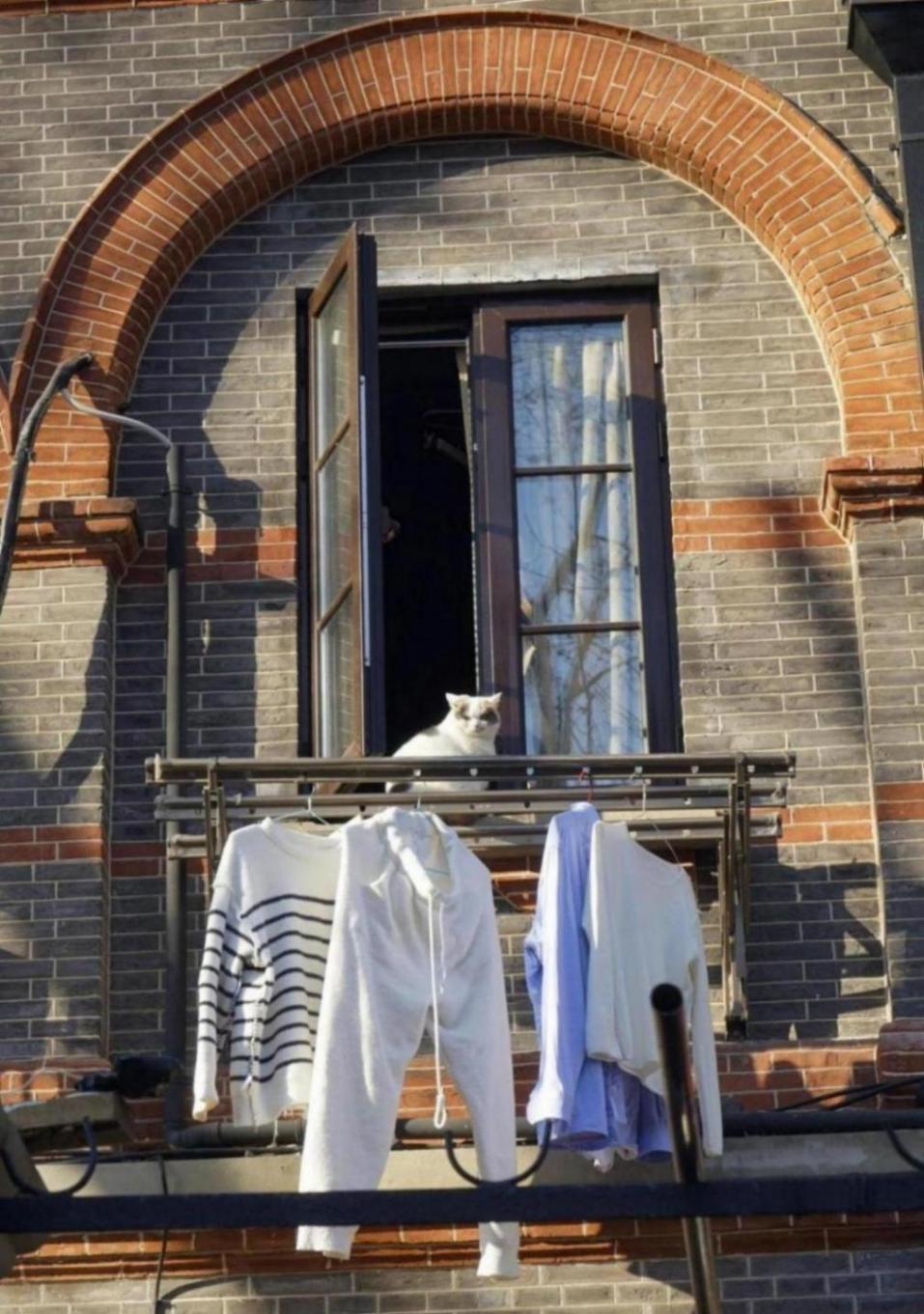 手拿咖啡,路过这每一个门洞口,不经意间瞥见慵懒的冬日阳光下,寻常人家的日常。有在一楼庭院里大树下闲聊的青年创业者,也有窗前发呆的白猫。