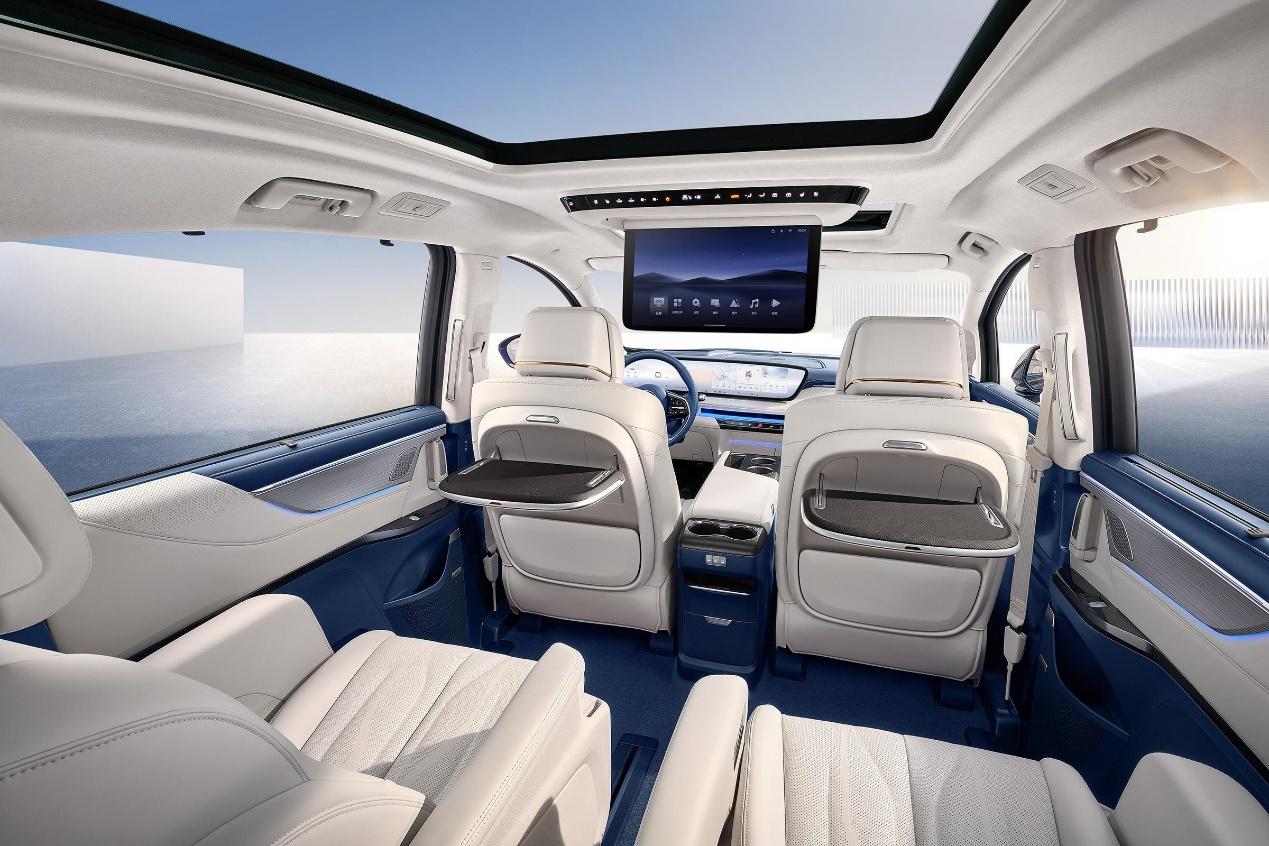 内饰设计融合了豪华与科技,采用了高档皮革和木饰材料,营造出奢华的氛围。中控台采用了大尺寸液晶屏设计,提供了丰富的智能互联功能和车载娱乐系统,操作简便直观。同时,内部空间宽敞舒适,为乘客提供了良好的乘坐体验。