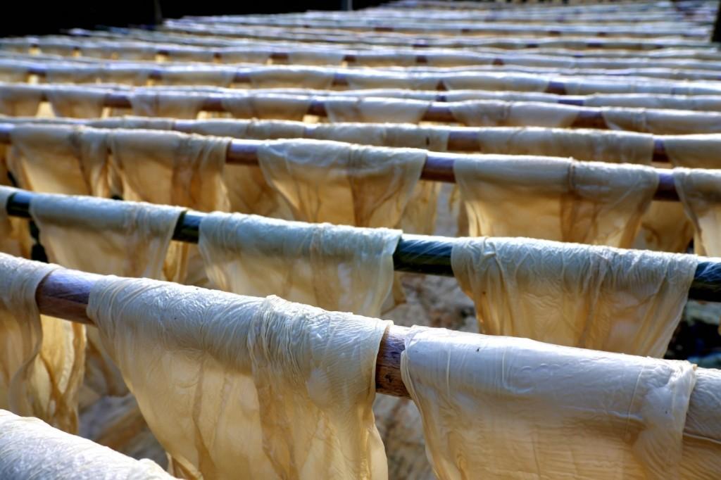 朱结有20多年腐竹制作经验。他告诉记者:“原汁原味的由坪腐竹,源于清朝传统手工家庭小作坊,有着悠久纯熟的生产历史。成品腐竹要经过泡豆、磨浆、煮浆、捻皮、晾干等多道手工,如今村民靠本事挣钱,改善家人生活,都感到很自豪。”