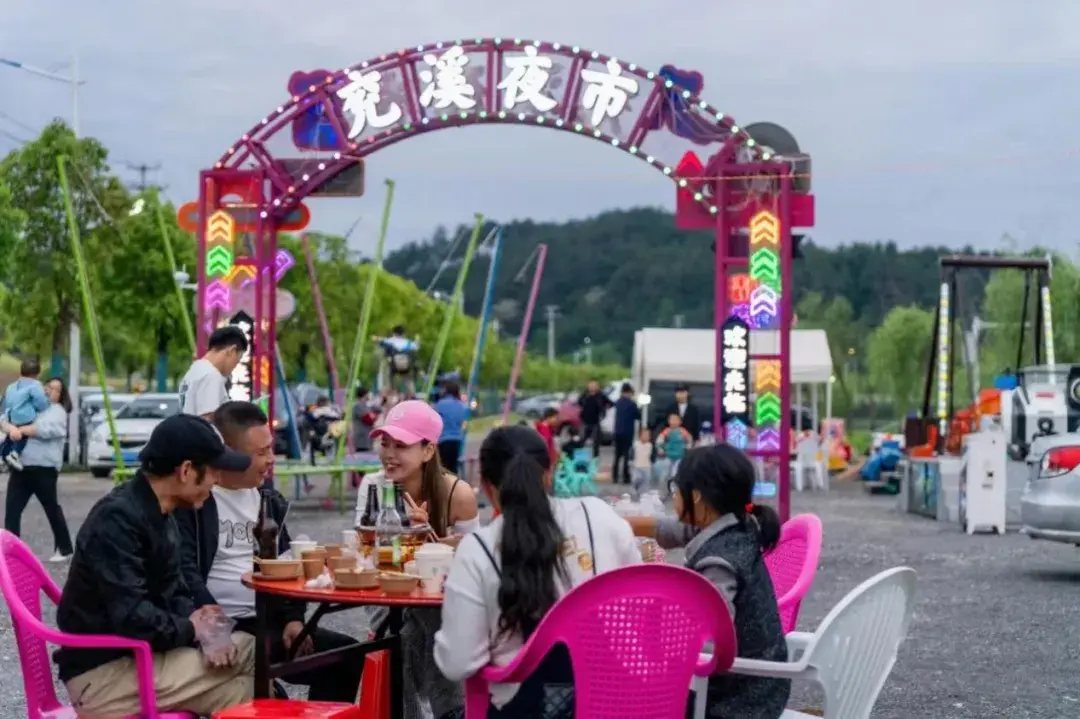 5月1日晚,屯溪区阳湖镇兖溪夜市“升级开张”,焕新升级的夜市点燃了城市的夜间活力,打造出了一幅生动鲜活的“人间烟火图”。(徐雅娜、方晓坚、胡骏)