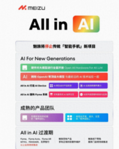 日前,魅族官宣战略大调整,即将全面停止智能手机的开发项目,转而全力投入新一代ai设备的研发。