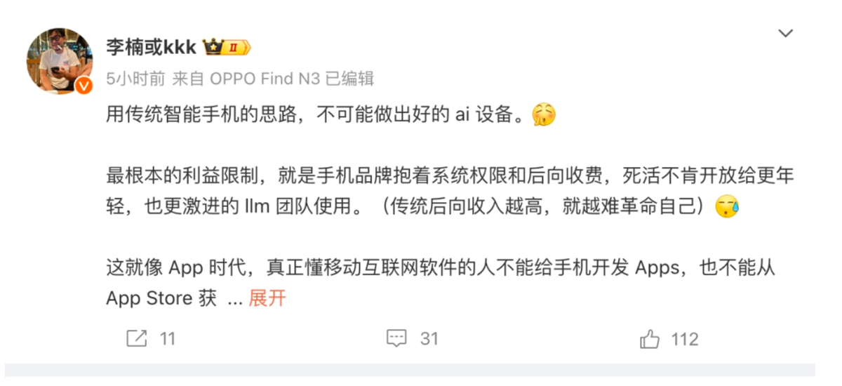 按照相关的规划,今年魅族会首先面向ai更新手机端操作系统,而的魅族首款ai device硬件产品也会在今年内发布。同时,考虑到两个时代硬件的过渡,在魅族all in ai的转型期间,原来的智能手机用户的体验和服务都不会有任何影响。在售的魅族手机产品的售后也会正常运转。