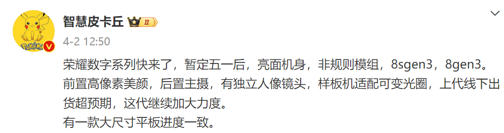 按照惯例,荣耀数字系列一年会更新两代,最新的荣耀100系列手机于去年11月发布,距离现在已经过去了快半年的时间,意味着下一代数字系列也快要发布了。