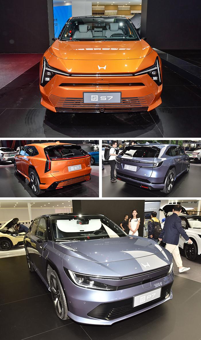 而在烨gt概念车的左右两侧的则是“烨”品牌旗下两款国产车型,其中烨s7将由东风本田进行生产,前脸的三叉型大灯与烨p7可进行快速区分,可发亮的全新h车标既彰显了其新能源身份,同时也更有质感。尾部的c型尾灯与前脸相得益彰,微微上翘的扰流板、隐藏式车门把手以及流媒体后视镜等细节处理又增添了一丝运动感和科技属性。新车预计将于年底上市。而广汽本田推出的烨p7走的却是简约风,尾部与烨s7最大的区别是并未采用贯穿式尾灯设计。至于它俩的关系,显而易见将互为姊妹车型,但郝哥感觉您也可以理解为新车拥有双外观可选。