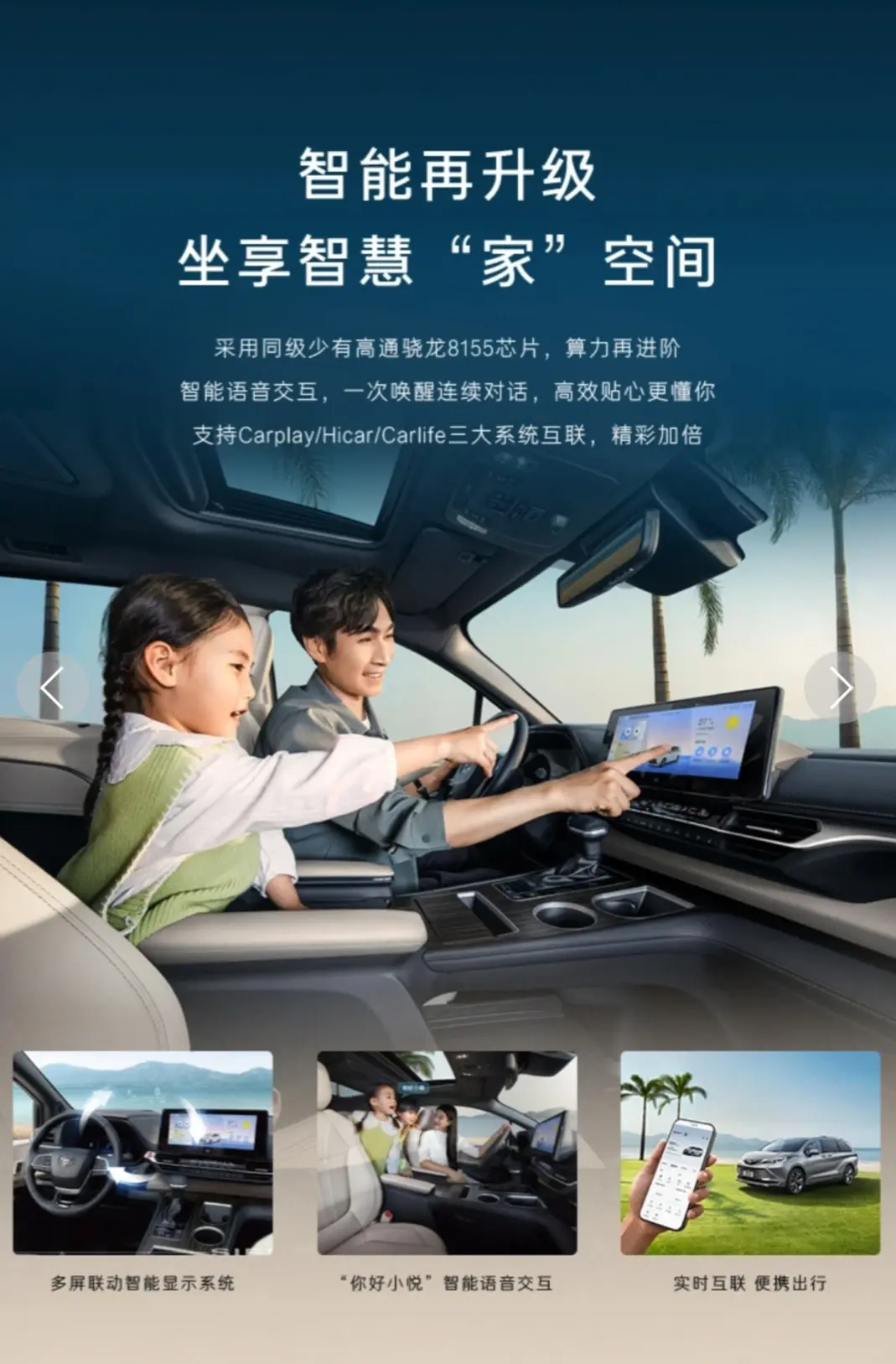 中控屏系统进行了升级,界面更好看。2024款赛那与华为有深度合作。它使用了华为的ai语音助手,ai反应不再迟缓在交互方面表现得更贴近真人,可控的功能也更多。比如轮胎胎压有无异常,车辆经过复杂路口时,忘记关窗、锁车……ai语音助手都有主动提醒。