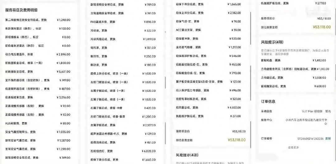 综上所述,小米 su7 大修费用高达 53000 元及售后在日产4s店维修,大家怎么看?欢迎留言讨论!