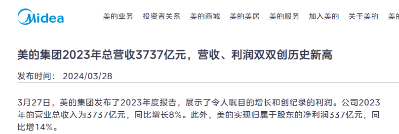 信源:《美的集团2023年总营收3737亿元,营收、利润双双创历史新高》——美的j9com官网2024-03-28