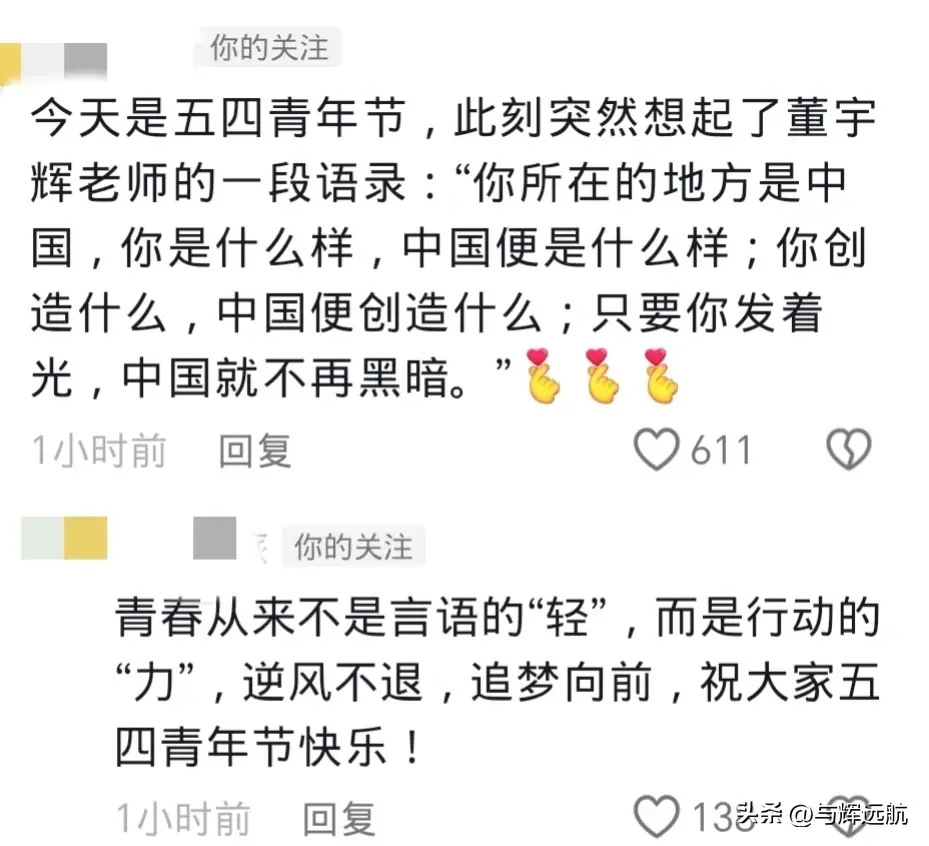 今天,五一小长假的第四天,也是五四青年节。安安直播时朗诵了《青春》,祝大家五四青年节快乐。每个节日她们都会有精彩的输出和祝福,这也是大家喜欢她们的原因,珍惜被人惦念的幸福!