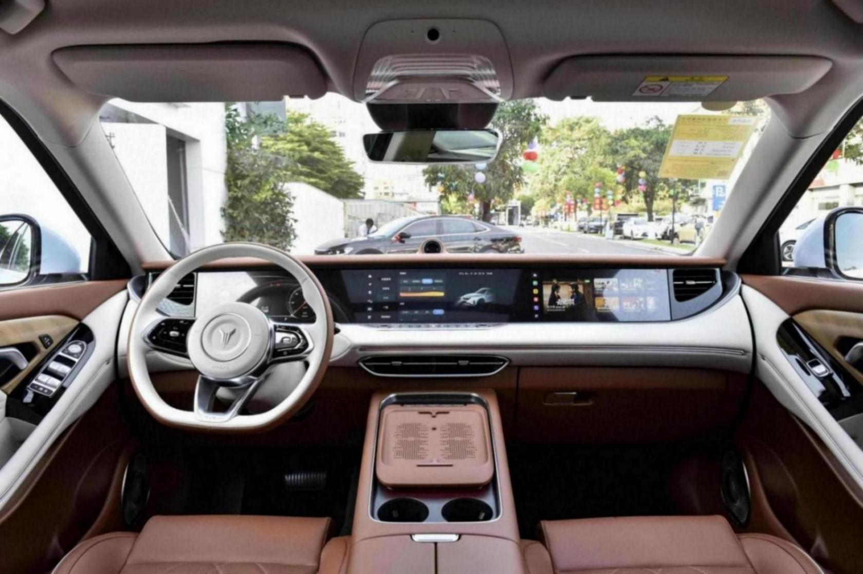 岚图free这款车的内饰表现也较为年轻化,标准的t字型布局设计,同时内饰也采用了环抱式的设计风格,除此之外,全车的材质以及做工都较为扎实,大面积的软质材料包裹,提升了车内的质感。当然内饰中最为直接的还是1066mm长的三联屏,三块屏幕均是12.3英寸,配的是8155芯片,车机系统存储为128gb,功能上支持gps导航、蓝牙车载电话、手机互联映射、车联网、5g网络,ota升级、面部识别功能。同时这款车配有10个丹拿音响,让车内的影音娱乐的效果进一步提升。