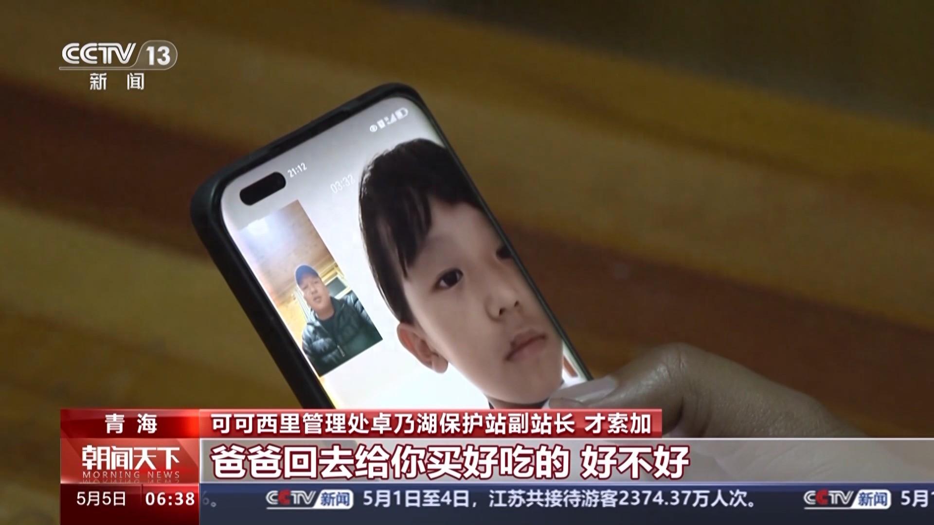 卓乃湖是国家一级保护动物藏羚羊集中迁徙产仔的主要区域,有“藏羚羊大产房”之称,是保护藏羚羊的重要观测点。记者到达保护站的时候已经是傍晚时分,保护站副站长才索加跟巡山队员开完会后,跟孩子进行了视频通话。