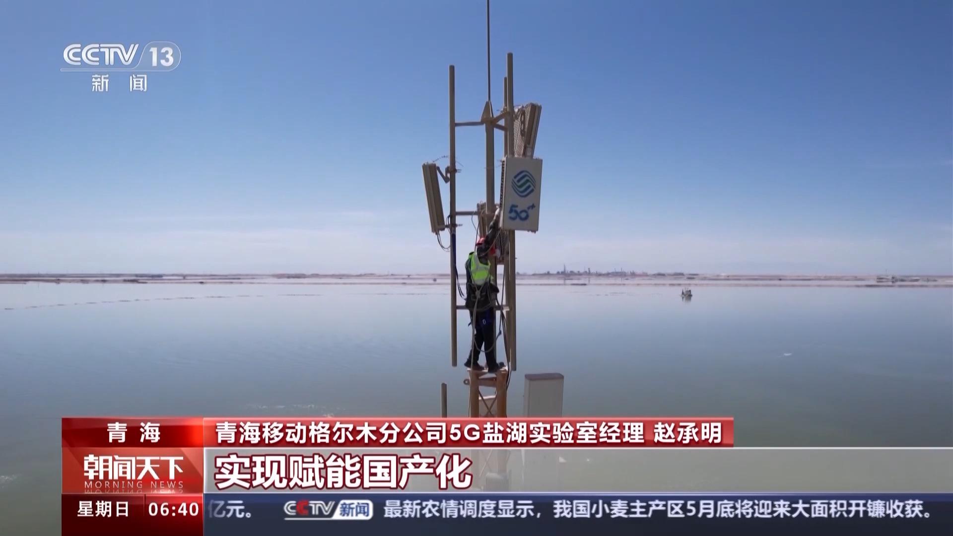 总台央视记者 孙蓟潍:我现在是在亚洲最大的盐湖——察尔汗盐湖,这里曾经是一片无人区,随着信号升格行动的展开,这里已经覆盖了5g网络。