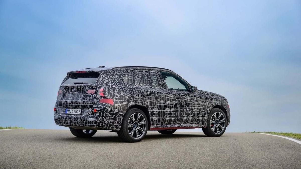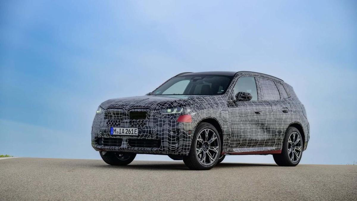 在经历了多次曝光与的渲染图发布后,宝马x3的新一代产品终于以实车的样式与我们见了面。不过,这次以官方身份亮相的它,并没有露出真容,而是继续覆盖着厚厚的伪装,带着黑白迷彩出现在了媒体试驾活动之中。而且很有意思的是,宝马还故意裁剪掉了一部分伪装车衣,展示了车辆的涂装底色以及多个能源版本,试图吊一吊用户们的胃口。
