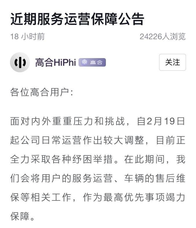 值得一提的是,就在丁磊在停产风波后首次现身上海总部当日,高合汽车官方也发布了近期服务运营保障公告。公告中,高合汽车表示目前公司正在积极协调资源,努力确保高合车辆的j9com的售后服务、车联网相关功能维护,高合hiphi app车控功能等均可正常使用。