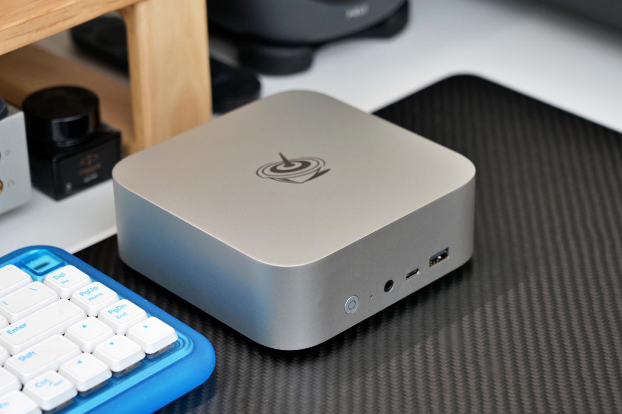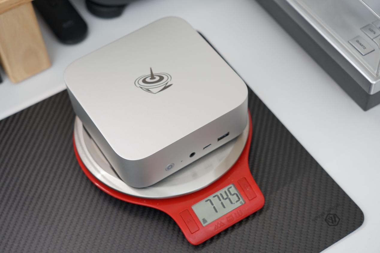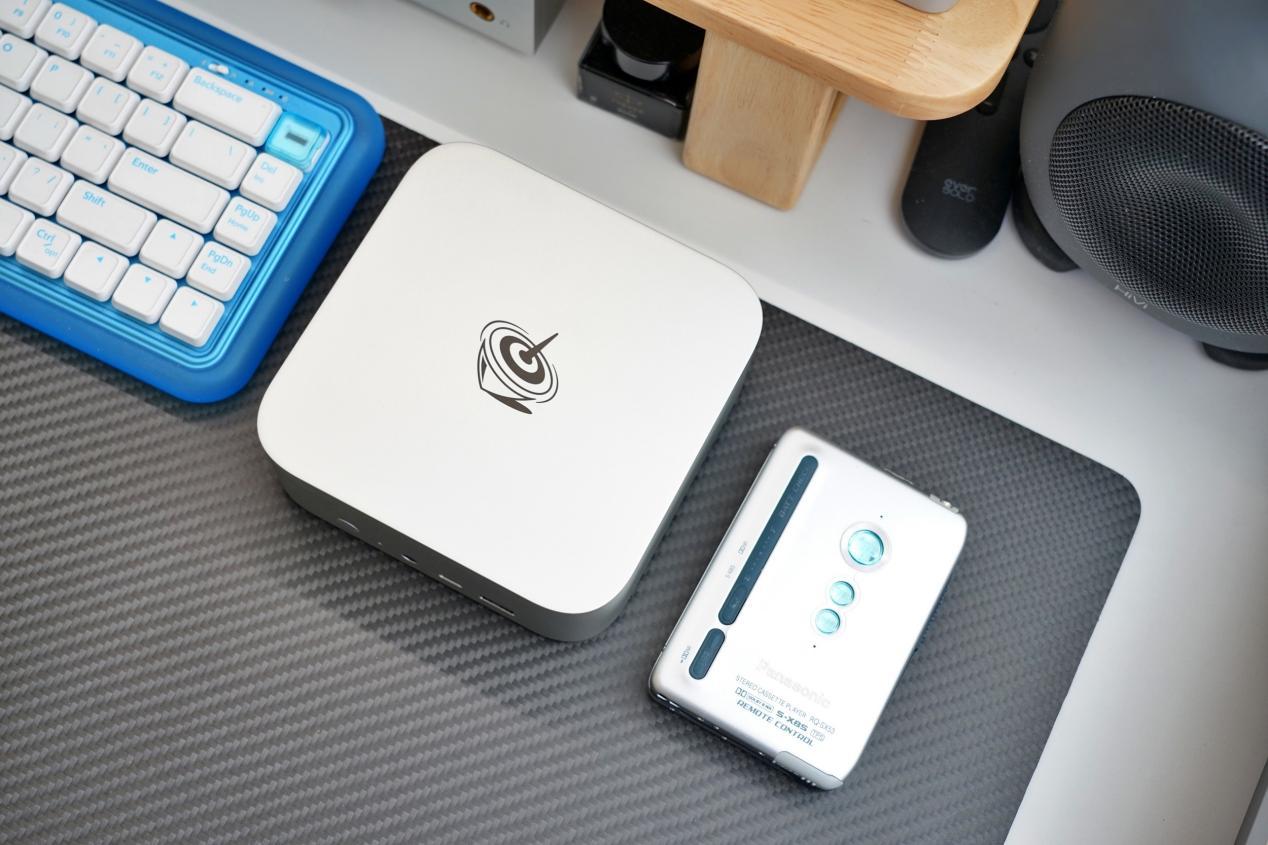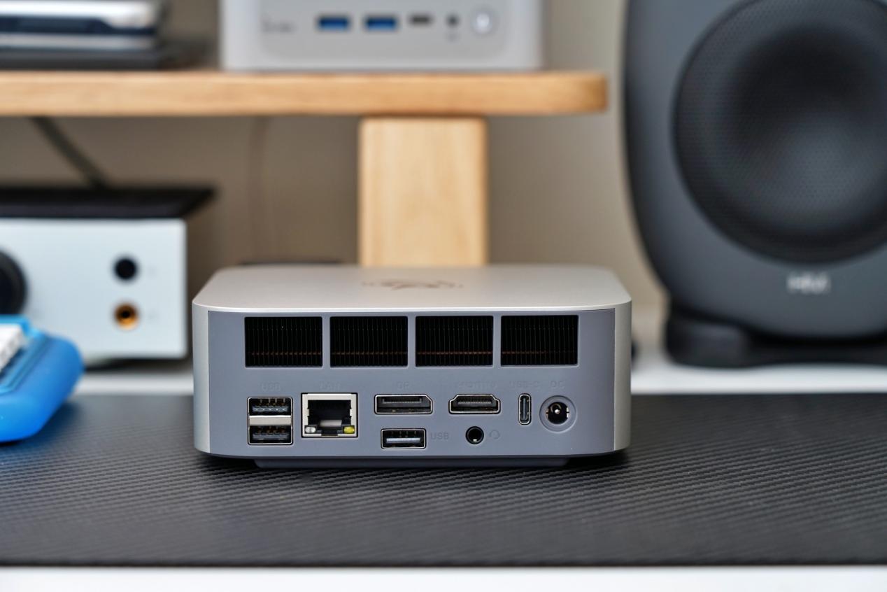 主机配色有灰色与银色可选,在表面处理工艺上也完全向苹果macmini主机看齐,给人一种苹果mac系列产品的质感,也很像以前金属卡带机的那种磨砂金属质感。